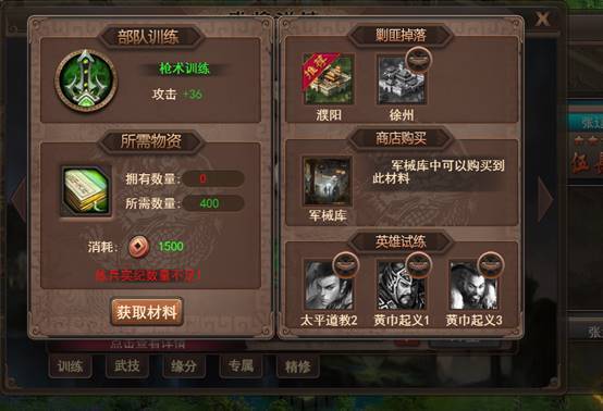 4. 消耗训练材料可以对武将进行训练,满足当前4项训练后还可以进阶武将,武将进阶后还可以开启新技能