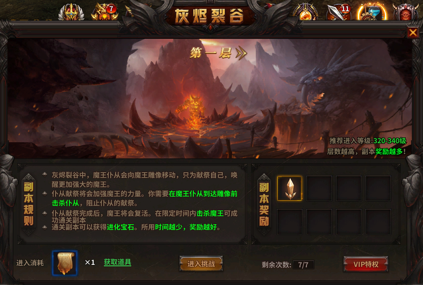 这是很多玩家关心的问题,首先我们需要三个角色全部到达320级,开启灰烬裂谷活动副本,进入需要门票道具:灰烬裂谷通行证,可以通过打怪掉落或是商城购买。