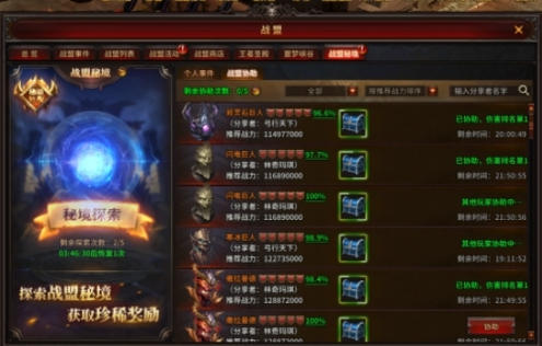 (3)当【秘境BOSS】挑战失败时,可分享到战盟中请战盟成员进行协助,BOSS被协助击杀仍可获得奖励。