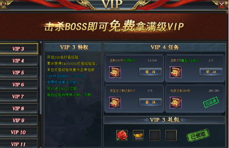 经验的获取和VIP等级相关,当VIP越高则打怪获得的经验倍数加成越多