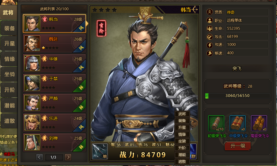 在兵法三国里最核心的玩法就是武将!首先在获取武将上,游戏里的酒馆招募、挑战副本、名将闯关都能够得到合成武将所需要的材料。对武将的种类进行划分,一共有智力、武力、统帅、政治、魅力这几个,在培养方面,提升基础属性有升星、进阶、晋升等几种方法,当然不同颜色的武将升星提升的最高空间也不同,一流武将最高可以升到三星,传奇武将四星,无双武将五星,神武最强可以到六星!大家在培养的时候尽量选择提升空间大的,避免造成资源的浪费。