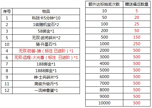 l 活动期间,充值和消耗可活动福袋,每消耗1个福袋可进行1次抽奖并获得1点福运。具体抽奖奖励情况和额外赠送福运情况: