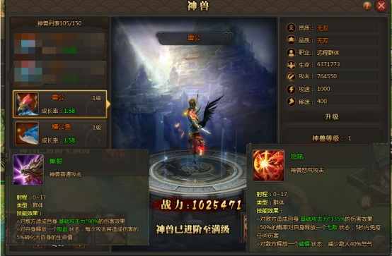 l 新增无双神兽—雷公(远程群体),攻击吸血,特技无敌+减敌方百分比怒气;