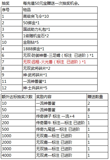l 每充值50元宝即可获得一次抽奖机会。