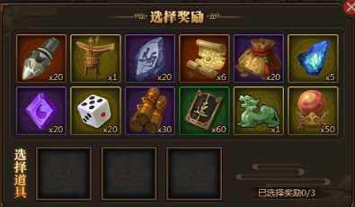 l 奖池分为一流、无双、神话3种 ,玩家每天可在3种奖池中选取分别选取5(一流)、4(无双)、3(神话)个道具来组成奖励转盘进行抽奖,每天仅一次自选次数,奖池情况如下: