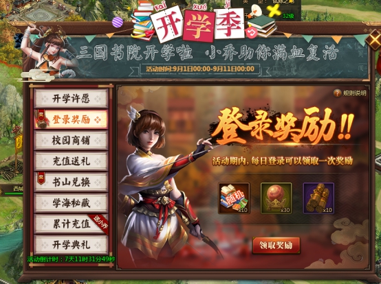 l 活动期间,每日登录可领取一次奖励。