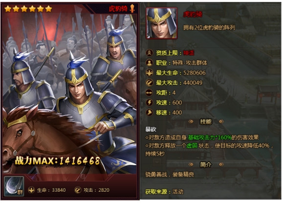 l 新增新兵种特殊攻击—虎豹骑,顶级属性,专克攻击、防御型士兵,详情如下: