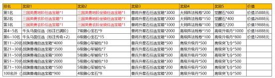 排行榜奖励如下: