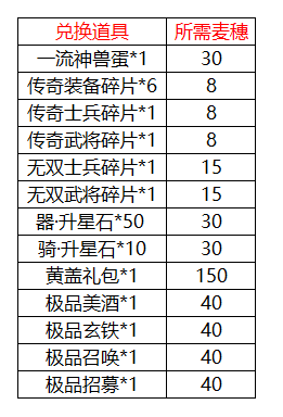 麦穗产出:商城花费10元宝可购买1个,每日登陆领取10个,游戏内玩法每日产出100个