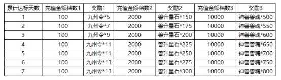 l 活动期间,充值达标即可领取对应奖励。具体对应档次奖励情况: