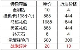 l 活动期间可购买超值优惠大礼包,具体对应礼包内容情况: