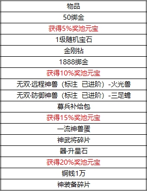 l 抽奖1次消耗50元宝,10次消耗500元宝,50次消耗2500元宝。每次抽奖消耗元宝的20%注入奖池,奖池初始元宝10000。