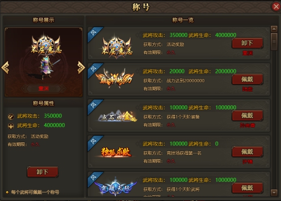 三、武将可单独佩戴称号