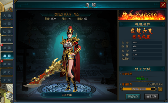 道境越高,能力越强,可以通过每天在线获得道境修为,也可以通过各种获得获得的修为丹,当道境修为满值时,可以进行道境突破。