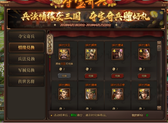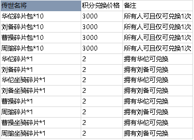 l 活动期间,提供传世名将及碎片兑换。
