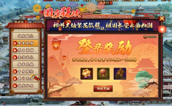 l 活动期间,每日登录可领取一次奖励。
