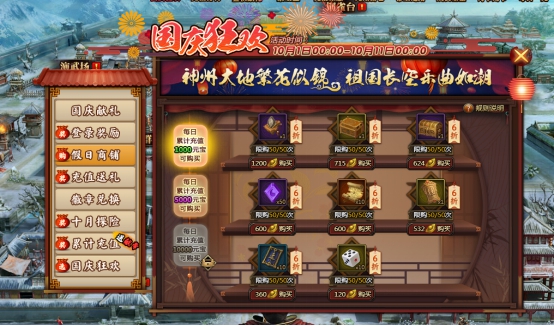 l 每日累计充值达到指定元宝可开启对应商店,充值金额越高,折扣越低;