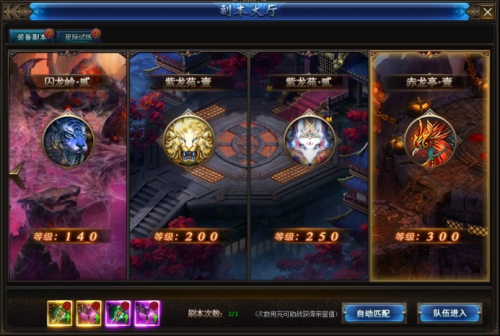 2.玩家通过消耗道具或者元宝来挑战各个副本地图,通关副本消耗副本次数,每天都会重置副本次数。