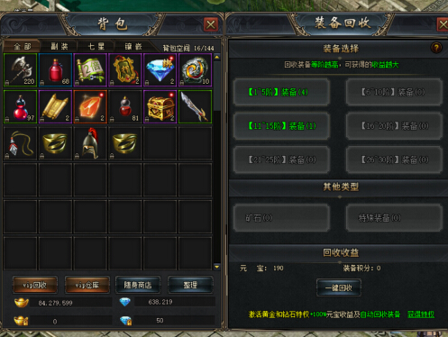 “变废为宝”不是一句托词,“回收装备的元宝”不只是一个宣传,《传奇国度》中将以往的广告宣传做到了实处!真的回收装备得元宝,挂机获得无用的装备可以通过【中州——装备回收员】获得大量元宝