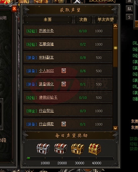 玩家每天获取声望达到10000、20000、30000、40000即可获得对应的声望奖励。