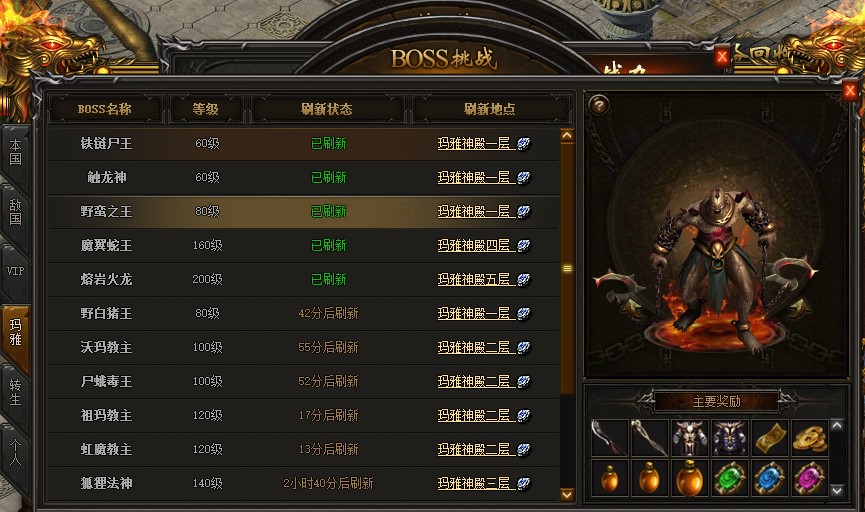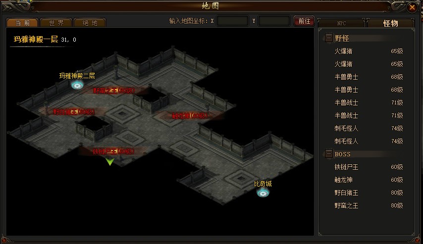 玛雅神殿是BOSS的乐园,里面藏有众多的BOSS和宝物。