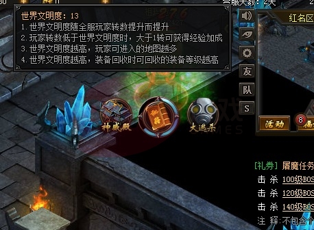 当鼠标指到主界面上方的合服天数或者每日必做的活动界面,玩家都能看到世界文明度。世界文明度可以说是传奇荣耀的特色玩法了。但是不少玩家对于世界文明度是一问三不知。世界文明度其实对玩家有莫大的帮助。