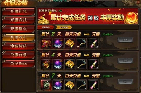 活动详情:开服第1天在沙城抓获游荡的野兽,可以获得海量金币、绑元等奖励,还有高几率获得高级魂兽丹;