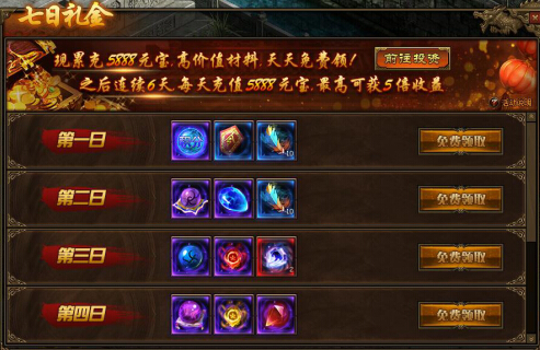 2.之后连续6天,每日满足充值,可额外领取4倍奖励