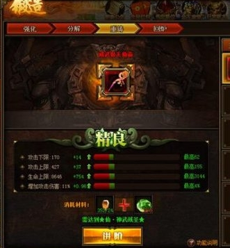 仙装重铸可提升玩家大量基础属性和特殊属性。