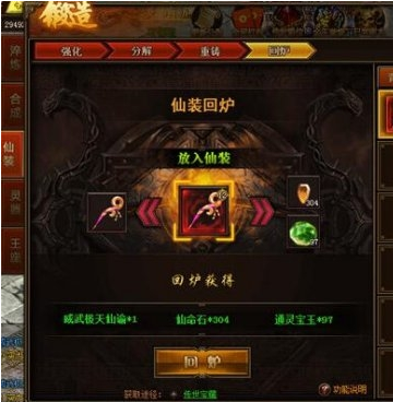 回炉对象只能为重铸后的仙装。