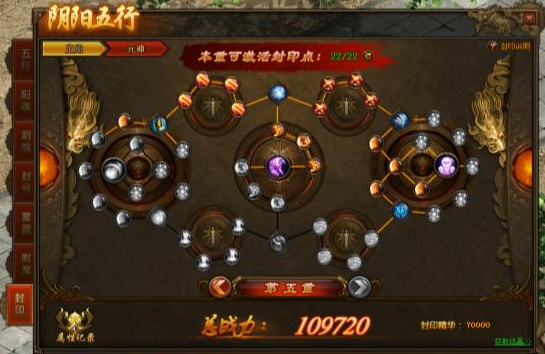 封印分为5重,激活每重指定的封印点数可开启下一重