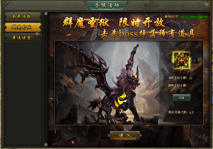 活动说明:活动期间,龙之宝藏产出创世圣装及传说特戒的概率限时翻倍
