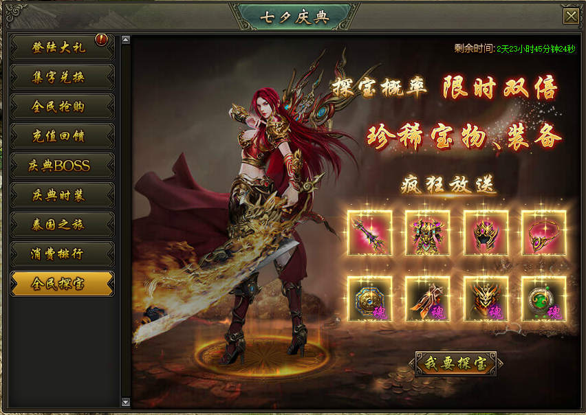 活动说明:活动期间,龙之宝藏产出圣装及神饰的概率限时翻倍,极品圣装、高级神饰大放送!