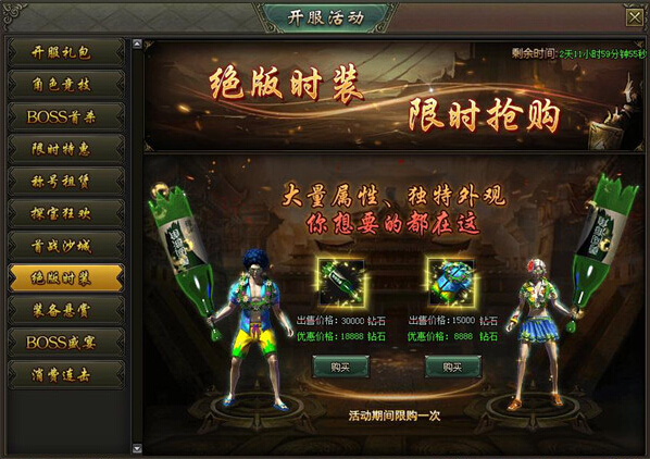 活动内容:活动期间,绝版时装限时抢购,独特外观,彰显个性!