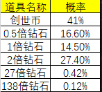 玲珑宝藏宝藏活动和彩票差不多,存在很多的未知性,可能一夜暴富,也可能血本无归,玩家可以根据以上的概率公示选择自己是否参与。小赌怡情,大赌伤身,每天适当的参与一二次,给自己一个中奖的激活,每天也用不了太多的钻石。中了138倍钻石一下就可以变身土豪玩家。 注:该游戏当前有充值优惠活动,超多福利!QQ:80083916(点击联系)