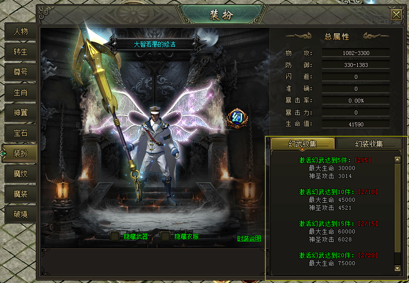 (2)激活不同幻武达到5件、10件、15件、20件可获得海量生命值、神圣攻击加成