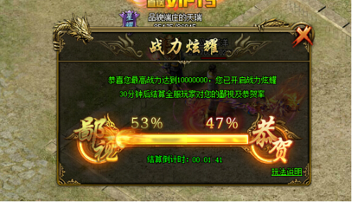(5)炫耀时间结束后,得出恭贺、鄙视的%占比结果,若恭贺大于鄙视则花费钻石全额返还,若恭贺小于鄙视则花费钻石不再返还