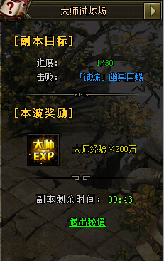 4.挑战奖励:每成功挑战1波,克领取一次大师经验奖励,副本结束后可以在进入界面领取