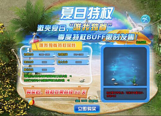 1.活动期间,玩家可消耗钻石直接购买夏日特权