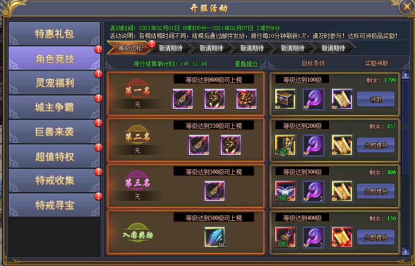 活动时间:开服3.6天