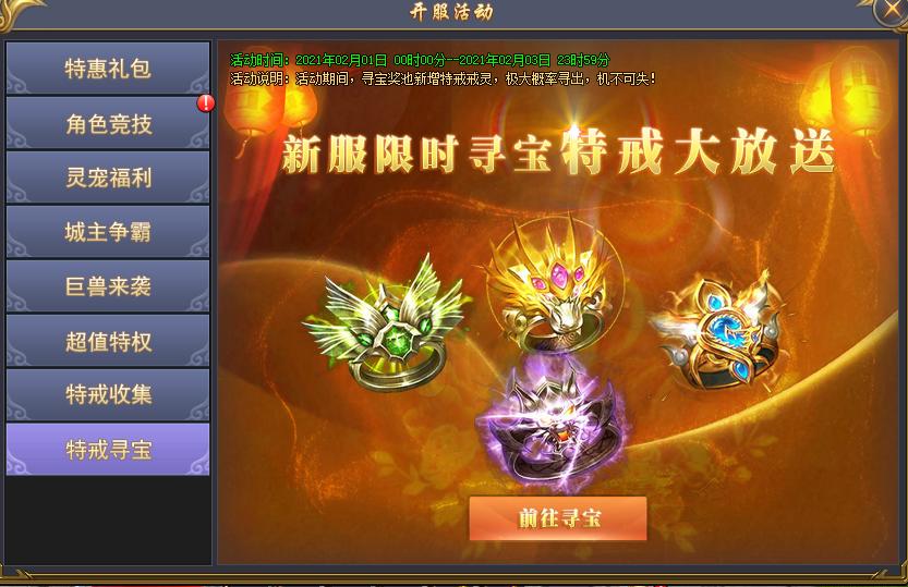 活动说明:四大特戒限时寻宝产出,仅限三天,速速参与!