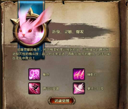 1、 武魂介绍:游戏忠实还原原著小说设定,玩家可在游戏中体验到史莱克七怪的所有武魂,目前版本提供蓝银草、邪眸白虎、邪火凤凰、柔骨兔、幽冥灵猫共五个武魂类型。