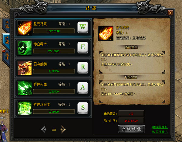 技能等级:技能等级越高,对目标造成的伤害越高,效果越大