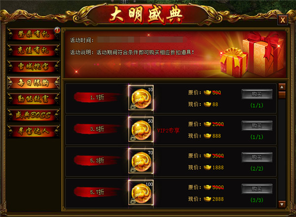 【活动说明】:活动期间符合条件即可购买相应折扣道具!