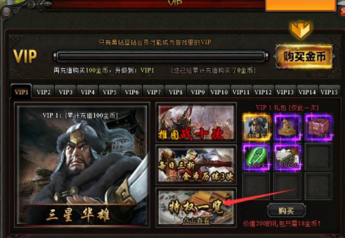 如果您没有足够的精力来经营游戏,又想在游戏中拥有很好的体验,VIP可能是您一个较好的选择。今天,将为主公们带来VIP特权的介绍 。 VIP特权可以通过点击左上方的VIP界面,再通过VIP特权一览进入到VIP特权面板。 进入VIP面板: