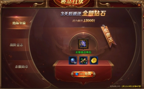 活动规则:首次充值任意钻石即可领取首充大礼。