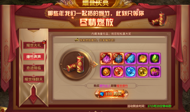 (1)耀世庆典当天,可以花费100钻购买爆竹达人称号,购买即可获赠耀世爆竹;