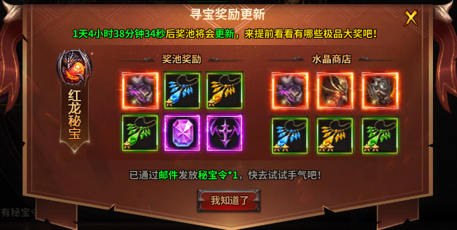 1) 【红龙秘宝】奖池、【水晶商店】商品每30天将会更新一轮