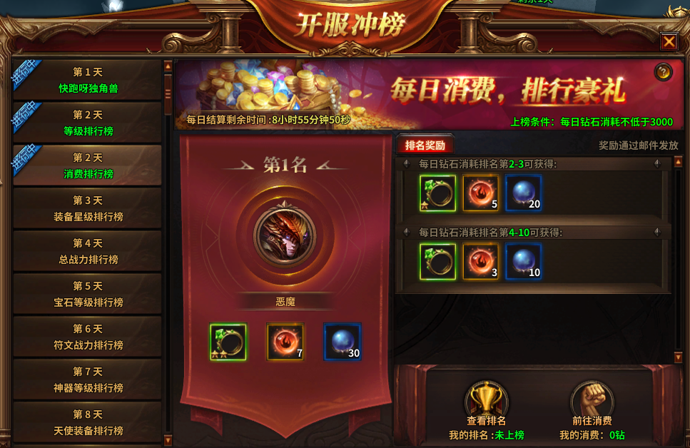 个人建议,在开服活动阶段,有能力的玩家还是尽量完成每日的充值礼包,这对开服冲榜活动有着极大的助力,开服活动的奖励性价比不用多说,属于霸区大佬必备。