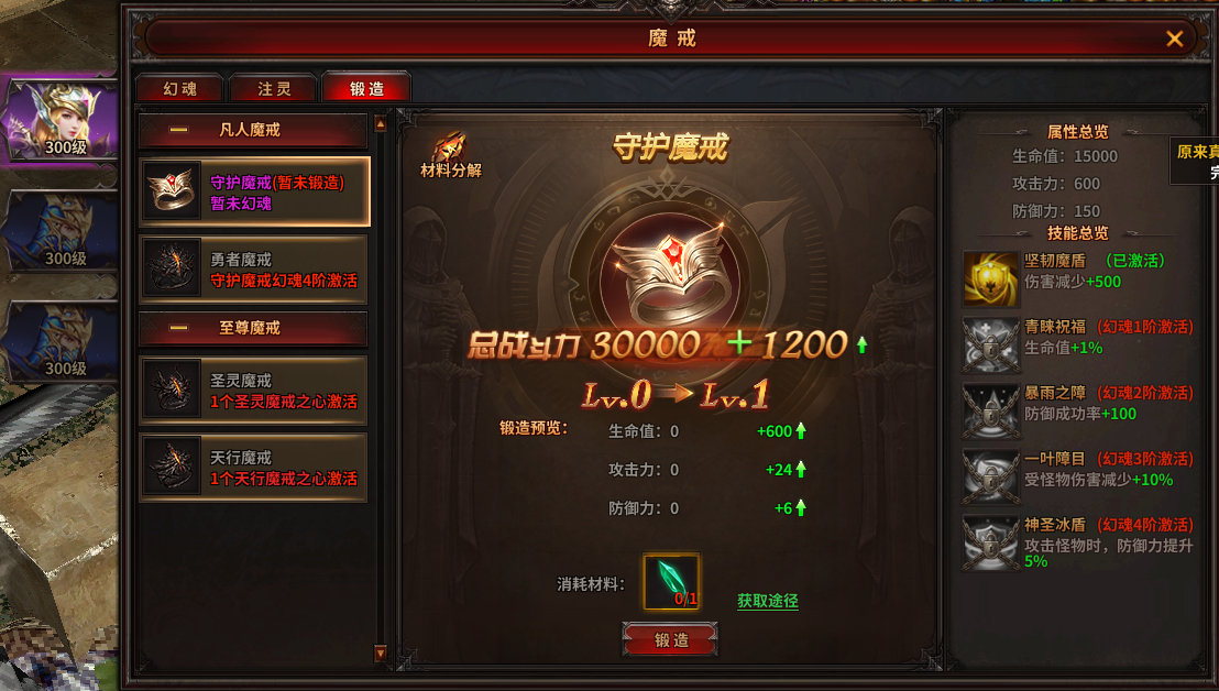 1) 激活魔戒后可以消耗魔戒精华对魔戒进行锻造,提升魔戒等级,获得基础属性;
